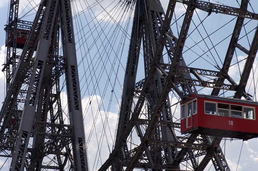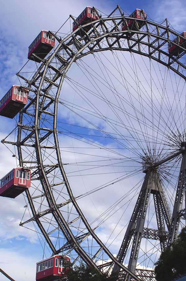 Das Wiener Riesenrad im Vergnügungspark Prater im Gemeindebezirk Leopoldstadt ist bis heute eine Sehenswürdigkeit und ein bedeutendes Wahrzeichen der Stadt Wien. Es wurde 1897 zur Feier des 50. Thronjubiläums Kaiser Franz Josephs I. errichtet und war zur damaligen Zeit eines der größten Riesenräder der Welt.