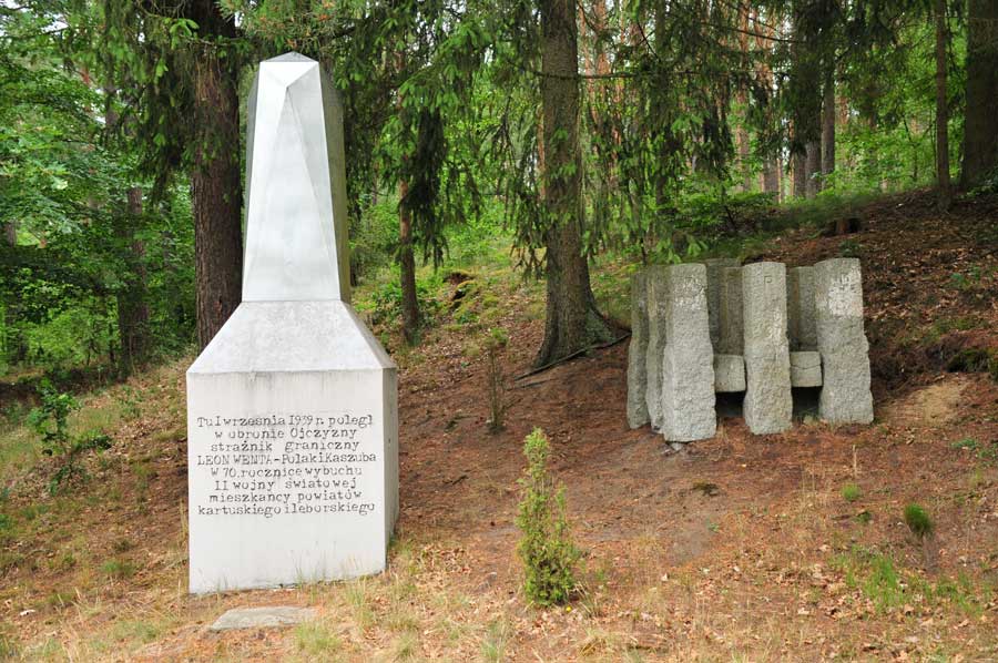 Leon Wenta wurde am 3. September 1909 geboren, am 1. September 1939 um ca. 19 Uhr wurde er mehrere Dutzend Meter vor der polnisch-deutschen Grenze entfernt von den Deutschen erschossen. Zum 70. Jahrestag des Ausbruchs des Zweiten Weltkriegs wurde hier ein Gedenkobelisk enthüllt. Es wurde vom Enkel der Wache - Zdzislaw Wenta aus dem Königshaus – feierlich der Öffentlichkeit übergeben. Leon Wenta war also höchstwahrscheinlich der erste Kaschube, der im Zweiten Weltkrieg gefallen ist.