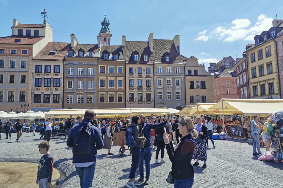 Natürlich waren die Straßen besser Fußwege entlang der Straßen und in den Parks, die wir durchquert hatten aufgrund des herrlichen Wetters bereits stark bevölkert und das sollte auch in der Innenstadt so bleiben, klar denn die wieder aufgebaute Altstadt ist allemal einen Besuch wert.