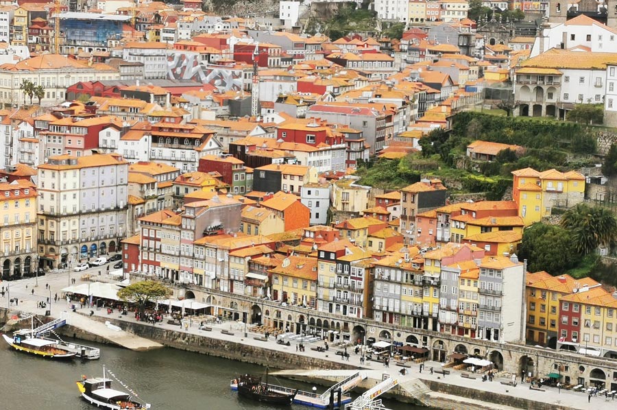 Enge, gewundene Gassen mit dichter Häuserbebauung bilden ausgehend vom Ufer des Douro an einem Hang die terrassenartige Struktur der Altstadt Ribeira, die seit 1996 als Weltkulturerbe der UNESCO eingetragen ist.