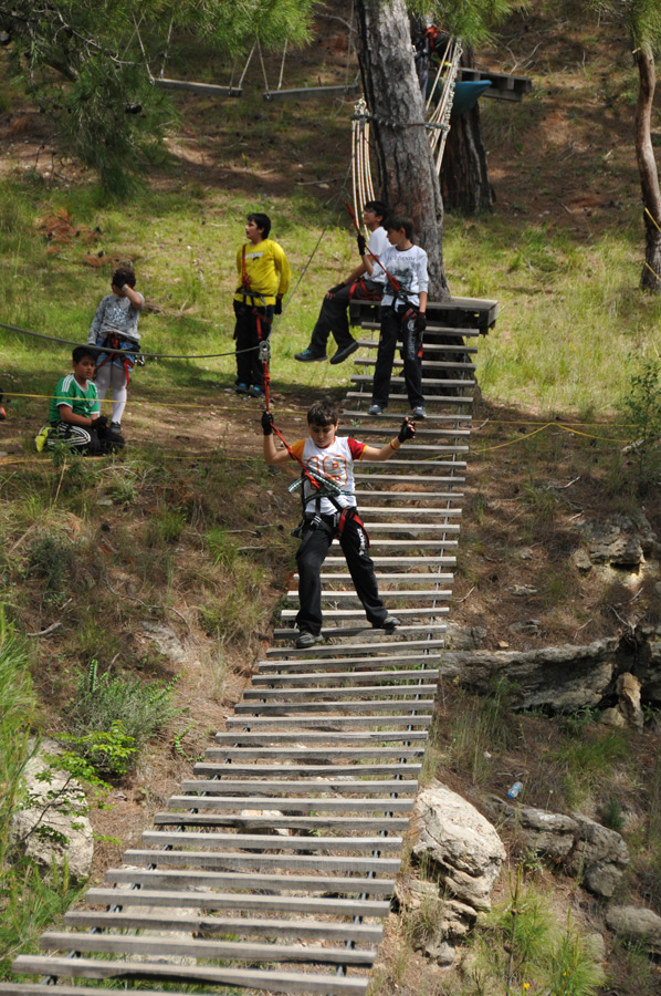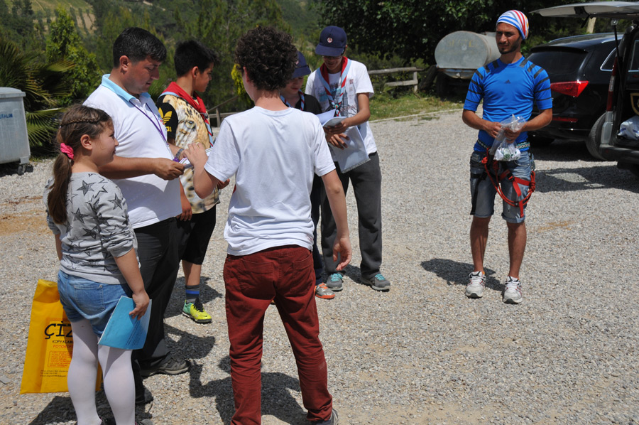 Zunächst einmal hieß es Zelte aufbauen und Einrichten, dann versammeln zur ersten Runde Klettern im Kletterwald des Adventure Park. Natürlich waren alle Mitglieder der Gruppe des Pfadfindervereins aus Manavgat hoch motiviert dabei, war es doch die erste Freizeitfahrt für fast alle Teilnehmer in den sieben Monaten seit Gründung dieser Gruppe.