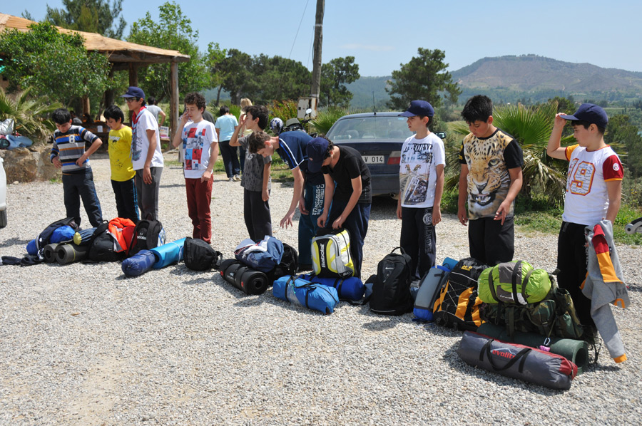 Eine weitere Jugendgruppe aus Manissa war zwar bereits für den frühen Nachmittag angekündigt, hatte sich aber wesentlich verspätet, so das nur noch eine kurze Einführung in das Klettern stattfinden konnte. Zu schnell wird es im engen Tal und unter den Pinien zu dunkel, um gefahrlos den Parcours zu absolvieren. Natürlich waren die 28 Teilnehmer enttäuscht, aber die Sicherheit hat nun einmal Vorrang.