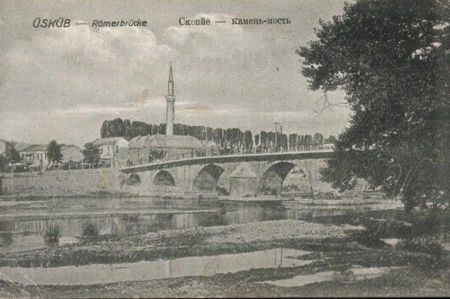 Somit haben wir uns zunächst auf die antike Brücke im Stadtzentrum konzentriert, die über den Vardar Fluss führt und noch heute als Fußgängerbrücke in Betrieb ist. Die Brücke besteht aus vier großen Segmentbögen, die den Wasserlauf direkt überspannen sowie zwei kleineren Segmentbögen, die sich am nahen Uferbereich befinden, so das auch ein mögliches Hochwasser der Brücke keinen Schaden zufügen kann. Am linksseitigen Ufer gibt es einen weiteren kleinen Segmentbogen, sowie am burgseitigen Ufer zwei weitere Bögen, um die notwendige Unterquerungshöhe zu erreichen. Die Pfeilerkonstruktion direkt am Flussufer ist so stark erweitert, das hier sicherlich einmal eine Torkonstruktion als Brückenwache gestanden haben wird.