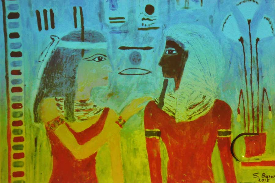 Unter dem Thema "Frau in Ägyptisch Blau" stellten Mitglieder der Gruppe JETZT auch Frauendarstellungen eigener Interpretationen vor, die im Rahmen einer Ausstellung präsentiert wurden. Zur Herstellung der Bilder wie auch der Skulpturen wurde das bereits beschriebene Ägyptisch Blau verwendet.