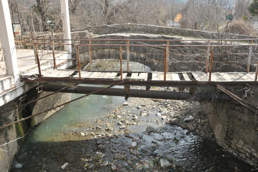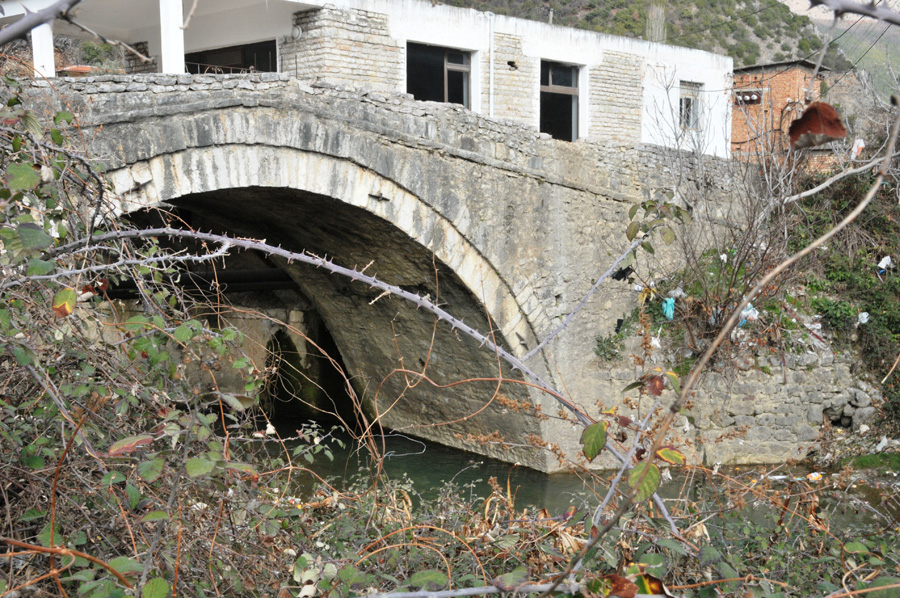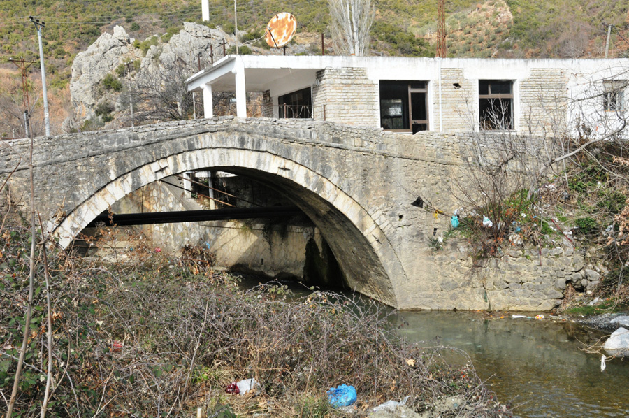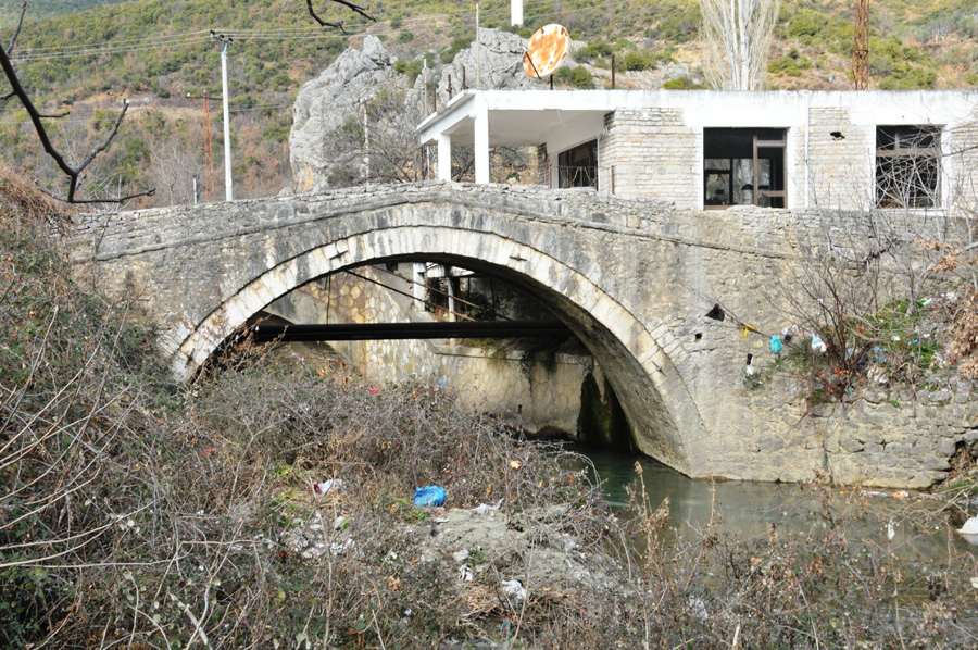Am nächsten Morgen ging es dann zunächst über den Pass Quafe Thane nach Elbasan, wo wir an der antiken Römerbrücke (etwa 10 Kilometer vor Elbasan) einen kurzen Zwischenstopp einlegten. Mehrfach waren wir bereits an dieser Brücke vorbei gefahren, hatten zwar die Hinweisschilder gesehen, doch die Brücke selbst war uns bislang entgangen. Grundsätzlich auch kein Wunder, so stark ist die Brücke in die moderne Bebauung nennen wir es "integriert", trotz des eigentlich hervorragenden Erhaltungszustandes. Wie in vielen Ländern ist auch in Albanien längst noch nicht bekannt, welches Juwel diese Brücke eigentlich darstellt, ist sie doch direkt an der Via Egnatia gelegen oder gar Teil von ihr. Nähere Informationen liegen uns leider noch nicht vor. So ist sowohl der Wasserlauf selbst auch das beidseitige Ufer stark verschmutzt und dient eher als Müllentsorgungsplatz. Schade, denn es ist eine wirkliche Perle an der Via Egnatia und wer weiß, was touristische Besuche zukünftig noch bewirken können. Selbst Rino, der sich erst seit kurzem mit antikem Kulturgut auseinandersetzt, war erstaunt über den Erhaltungszustand, immerhin 2.000 Jahre alt.