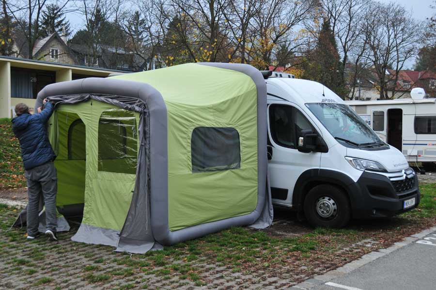 Hin und wieder treffen wir während unserer Projekt-Reisen auf Camper, die im Bereich der Dach- und / oder Vorzelte mit den doch so einfach "aufzubauenden" Luftzelten unterwegs sind, schnell ist man im Gespräch, zumal wir selbst ein aufblasbares Dachzelt mit uns führen, wenn es abseits der Routen um die Erkundung von Wander- oder Mountainbiketouren geht.