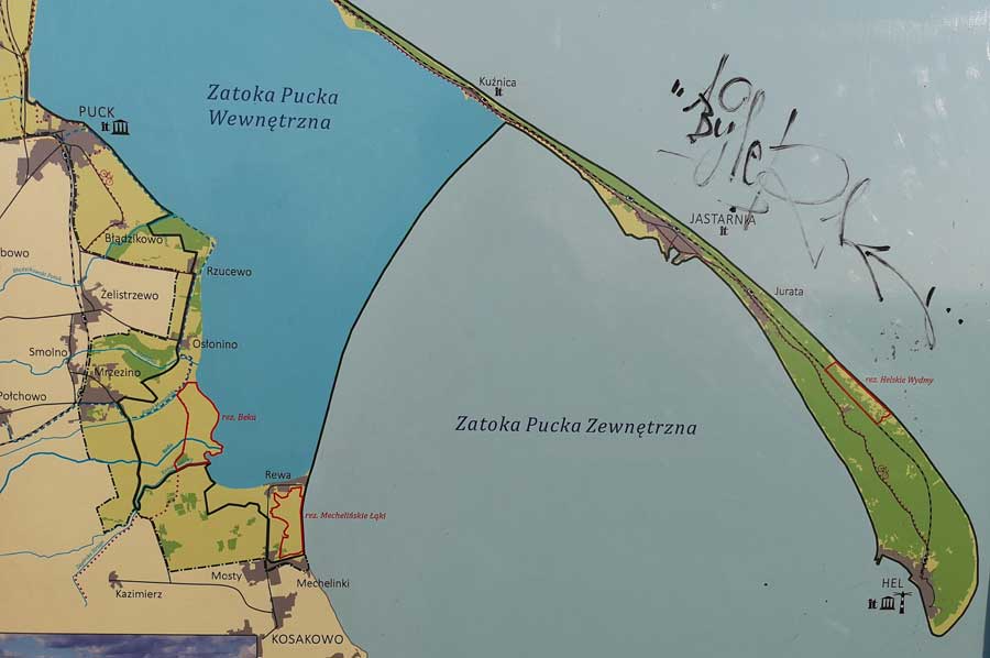 Durch die Zatoka Pucka verläuft zwischen dem Fischerdorf Rewa nordöstlich von Rumia (Rahmel) und der Ortschaft Kuźnica (Kußfeld) auf der Halbinsel Hel eine durchgehende schmale Sandbank, die Reff genannt wird. Diese Sandbank steht bei Ansteigen der See oft unter Wasser und hinterlässt bei Zurückweichen des Wassers kleine Durchgänge, die von Fischerbooten passiert werden können; die tiefste dieser Passagen wird Kutznitza (Deepke, d. h. kleine Tiefe) genannt.