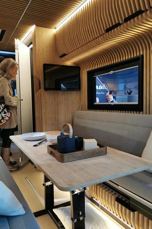 Hier auf der CMT in Stuttgart konnten wir jetzt die aktuelle Version des Alpine Cross Cabin „Signature“ anschauen, der mit seinem automobilen Leichtbau, seinen Sicherheitsaspekten, seiner Arbeitsplatzausstattung und seiner Raumeffizienz aufwartete.