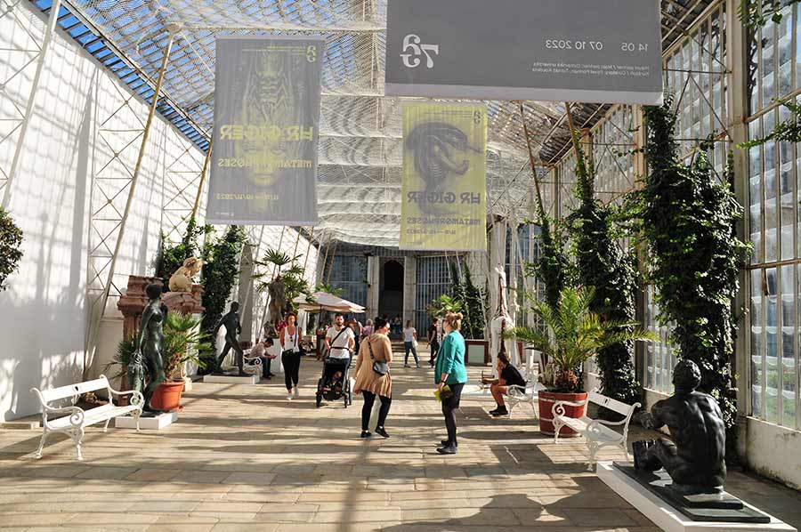Mit der Ausstellung „Metamorphoses“ sind wohl letztmalig und nur noch bis zum 19.11.2023 die Werke von HR Giger in der Aleš South Bohemian Gallery der ehemaligen, neugotischen Schlossreitschule in Hluboka nad Vltavou in Tschechien zu sehen, was wir unbedingt als Empfehlung aussprechen möchten. Da auch die Umgebung zu einem längeren Aufenthalt beiträgt, bietet sich hier ein Kurzurlaub geradezu an, den wir gerade erleben durften. Und das nicht nur für Liebhaber klassischer Rockgeschichte, denn Giger war auch in der Filmbranche sehr aktiv. Bereits 1968 war er ausschließlich als Künstler und Filmemacher tätig. Als Szenen- und Kostümbildner prägte er mit seinem Stil bekannte Filme wie Alien (1979) oder Species (1995). Für seine Mitwirkung an Alien wurde Giger 1980 ein Oscar in der Kategorie Beste visuelle Effekte verliehen, und sein Stil wurde einem breiteren Publikum bekannt.