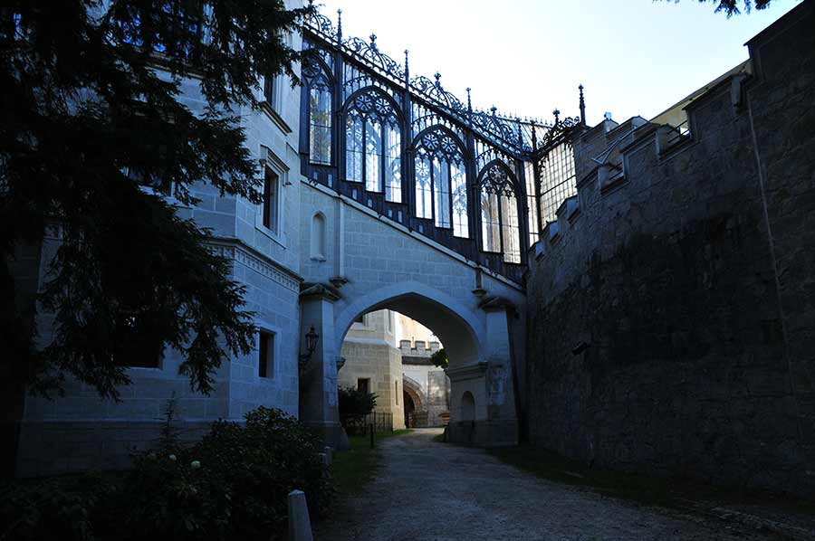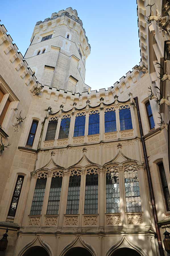 Im zweiten Drittel des 19. Jahrhunderts beschloss Johann Adolf II. Fürst zu Schwarzenberg, Hluboká im Stil der Romantik umzugestalten. Das Projekt, das dem bauhistorischen Kontext der Burgenrenaissance angehört, wurde vom Wiener Architekten Franz Beer ausgearbeitet, der die 1840 begonnenen Bauarbeiten zwanzig Jahre lang leitete. Die alten Gebäude wurden abgetragen und an deren Stelle ein malerisches Schloss im Tudorgotikstil errichtet. Die anspruchsvolle äußere und innere Gestaltung beendete Ferdinand Deworetzky 1871.