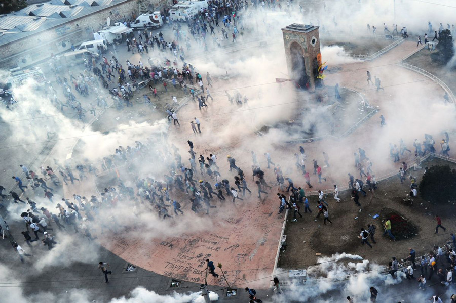 Am 27. Mai 2013 begannen am Taksim-Platz Demonstrationen gegen die Pläne der Stadterneuerung bzw. gegen das Fällen der Bäume im Gezi Park. Am frühen Morgen des 31. Mai 2013 riegelten türkische Polizeieinheiten den Platz ab; sie zündeten Zelte kampierender bzw. schlafender Demonstranten an und attackierten sie mit Tränengas und Pfefferspray. In den folgenden Tagen griffen diese Demonstrationen auch auf andere Städte über; viele Menschen äußern sich unzufrieden über die autoritäre Politik des seit zehn Jahren regierenden Ministerpräsidenten Recep Tayyip Erdoğan, der auch Vorsitzender der Regierungspartei Adalet ve Kalkınma Partisi (AKP) ist.