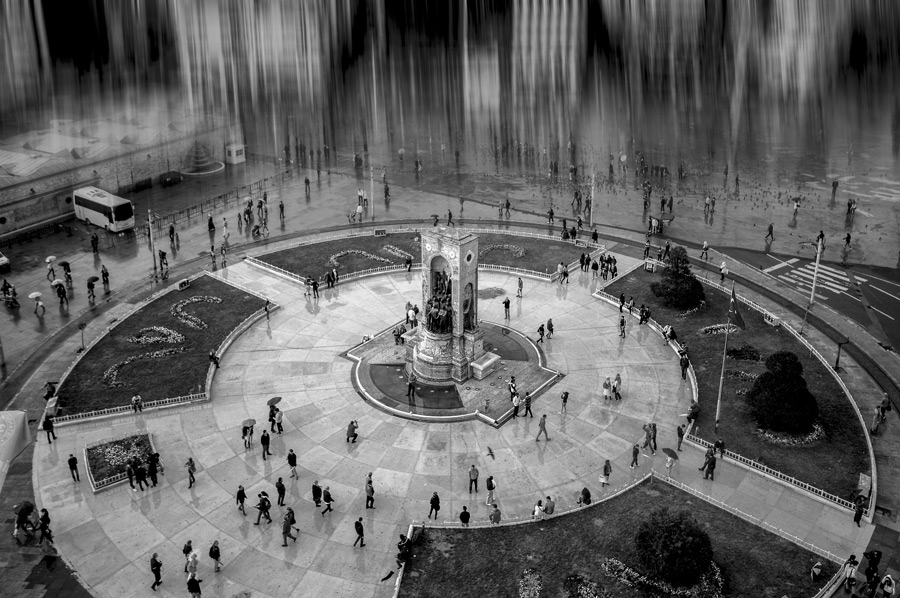 Der Taksim Platz in Istanbul galt immer als der wichtigste Verkehrsknotenpunkt der Stadt. In der Mitte des Platzes steht das 1928 errichtete „Denkmal der Republik“ (türkisch Cumhuriyet Anıtı), das an die Gründung der Republik Türkei im Jahre 1923 erinnern soll.