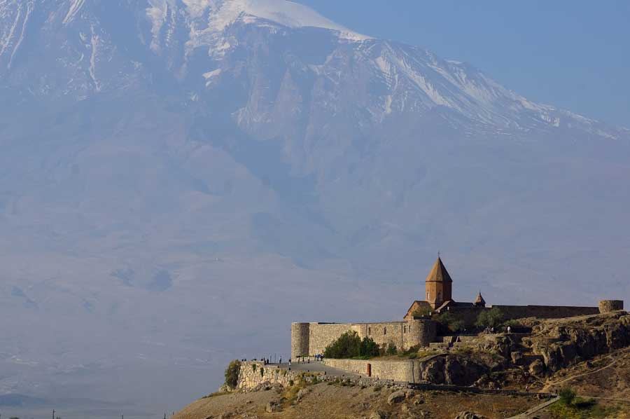 Nach der Sintflut soll die Arche Noah auf dem Ararat gestrandet sein. Den christlichen Armeniern, die seit Jahrtausenden in der Region leben, gilt er bis heute als heiliger Berg und als Nationalsymbol, auch wenn er nicht auf ihrem Staatsgebiet liegt, sondern gleich hinter der Grenze in der Türkei. Die Grenze ist allerdings geschlossen, weil sich beide Staaten nicht darüber einig sind, ob die Vertreibung und Ermordung der armenischen Bevölkerung im damaligen Osmanischen Reich während des Ersten Weltkrieges Völkermord war oder nicht. Immerhin: Das, was den Armeniern verwehrt wird, nämlich den Ararat zu besteigen, ist Touristen erlaubt, allerdings nur mit Sondervisum und nur in der Gruppe.