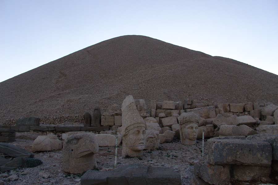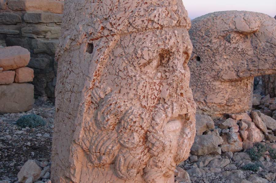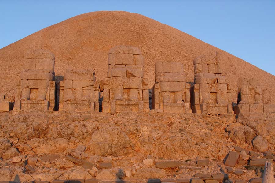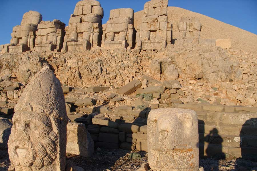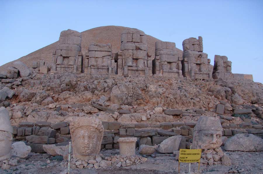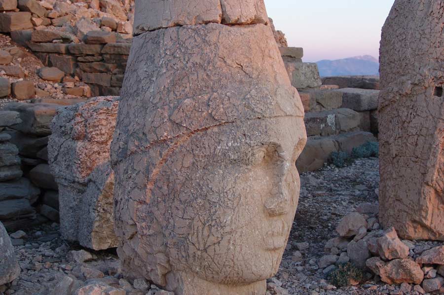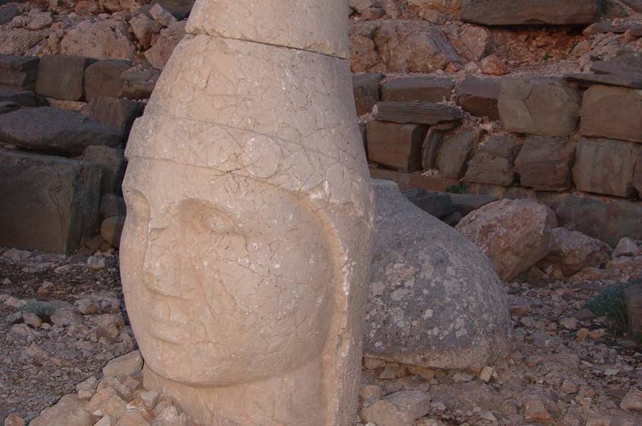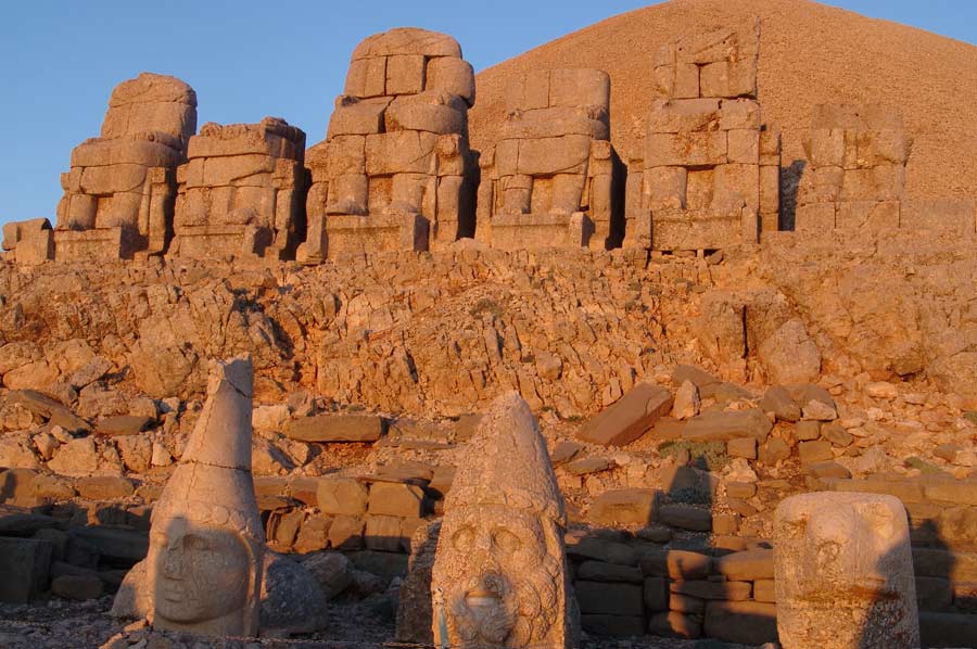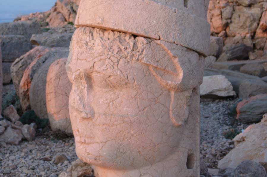 Da es noch eine weite Strecke bis nach Katha ist, setzen wir die Fahrt umgehend fort. Gegen 20.00 treffen wir am Hotel ein. Man erwartet uns bereits mit einem Abendessen. Schon wenig später geht es auf die Zimmer, da es nur eine kurze Nacht sein wird. Um den Sonnenaufgang am Berg Nemrut zu erleben, ist es notwendig, bereits um 3.00 Uhr morgens die Anfahrt zum Nemrut Berg zu beginnen. Mit kleineren Fahrzeugen geht es den Berg hinauf auf 2.000 Meter Höhe. Etwas Zeit verbringen wir in einer kleinen Teestube am Gipfel bevor es zu Fuß auf den Nemrut geht. Es ist anstrengend und man merkt das dünner werden der Luft schon recht deutlich. Rechtzeitig vor Sonnenaufgang sind wir am Gipfel angelangt, beeindruckt von den Figuren, dem riesigen Schotterberg der Grabanlage und der aufgehenden Sonne. Trotz klirrender Kälte, auf die wir allerdings gut vorbereitet sind, genießen wir in vollen Zügen. Ein einmaliges Erlebnis.