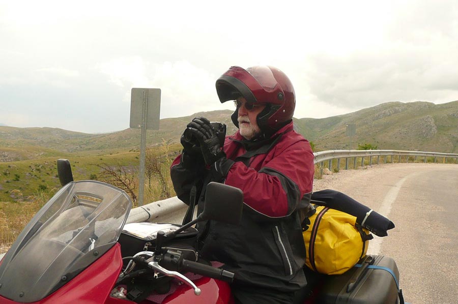 Montag, den 4. Juli Von Kavala nach Igoumenitsa 480 km Autobahn. Nach einem ausgiebigen Frühstück sind wir gegen 9:30 Uhr Richtung Igoumenitsa gestartet. Auf der gut ausgebauten Autobahn hat man das Gefühl, dass es nur Bergab geht. Ein großer Knotenpunkt hinter Thessaloniki hat noch einmal unsere volle Aufmerksamkeit gefordert. Die sonst übliche Beschilderung in zwei Sprachen, eine mit den griechischen Schriftzeichen und eine mit den für uns lesbaren Zeichen fehlte. Die einzige Orientierung waren die E- Nummern der Autobahnen. Wir folgten von der Türkei bis zum Hafen von Igoumenitsa der „E 90“. Bei einem der Tankstopps habe ich wohl E10-Sprit bekommen ohne es zu wissen. Die Leistung war schlecht und der Verbrauch war viel höher als mit „normalem Super“. Ich habe mir schon Sorgen gemacht und geglaubt, dass ein Zylinder ausgefallen ist. Nur das nicht! Aufmerksam habe ich auf den Motor gehört und festgestellt, er hört sich genauso an wie sonst auch. Da ich keinen Fehler feststellen konnte, fuhr ich etwas vorsichtiger und beschränkte die Höchstgeschwindigkeit auf 120 km/h. Erlaubt sind auf Autobahnen in Griechenland sowie so nur 90 km/h für Motorräder.