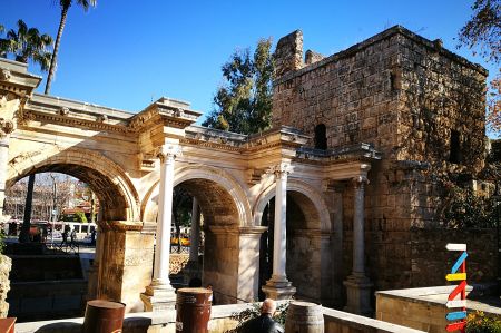 - Tag Besichtigung von Perge, einer gr.-röm. Stadt bei Antalya und Besuch von Antalya (Altstadt, Hadrianstor, Hafen, Hidirlik Monument, archäologisches Museum u.a.) Üb. in Antalya,