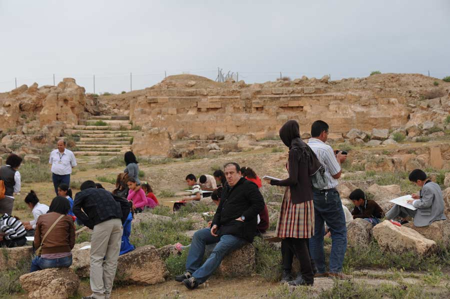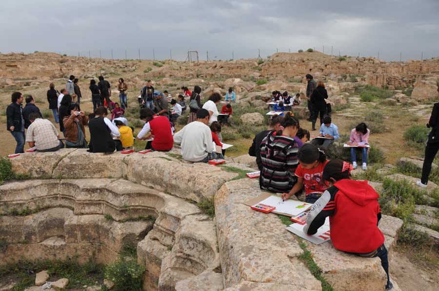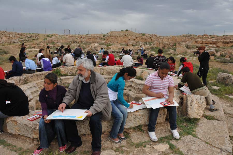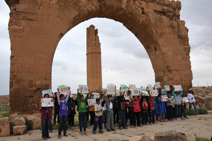 In der antiken Bibliothek, der ältesten Moschee und Medrese der Welt, in Harran hatte der international bekannte Istanbuler Künstler Ahmet Günestekin eine Gruppe von Schülern eingeladen, die in der historischen Umgebung ihre eigenen kleinen malerischen Kunstwerke erstellen sollten.