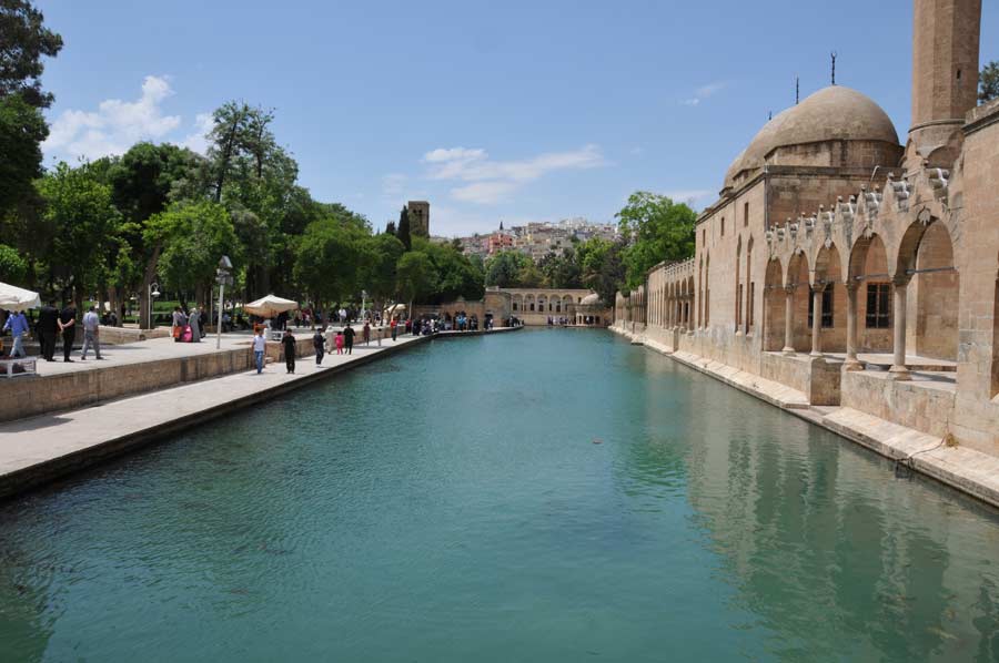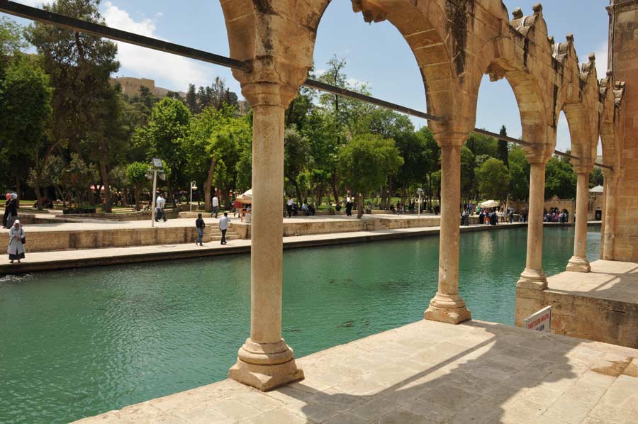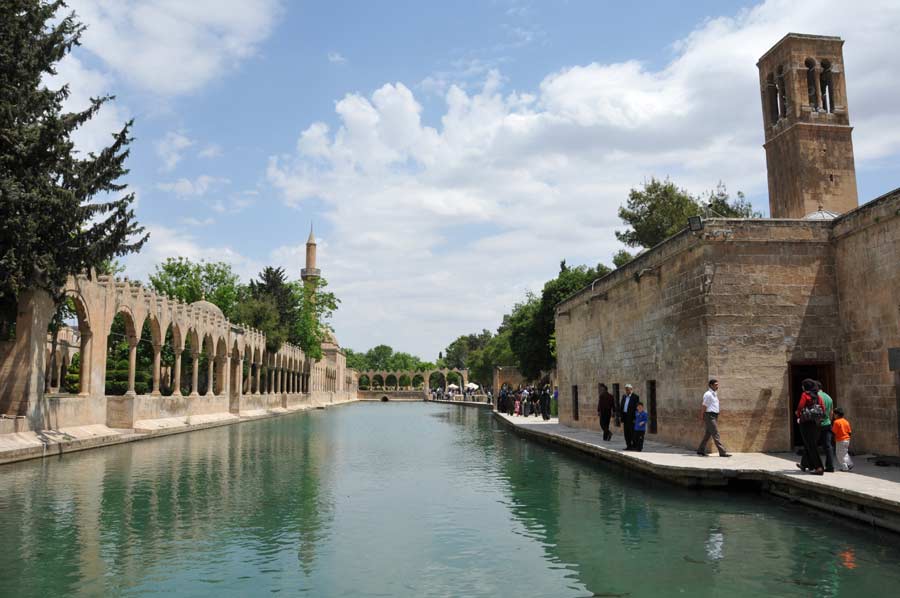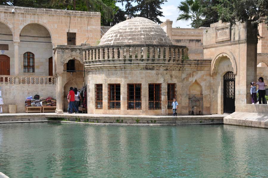 Eine zentrale Stätte des Wallfahrtsortes Sanliurfa ist die Halil-Ür Rahman-Moschee und der zum Komplex gehörender „Teich des Abraham“ mit heiligen und unantastbaren Karpfen. Die Legende besagt, dass der Prophet Abraham, der auf dem Scheiterhaufen verbrannt werden sollte, sich selbst errettete, indem er das Feuer in Wasser verwandelte und aus dem Feuer sprühende Glutbrocken zu Karpfen wurden. In der umgebenden Parkanlage findet man Pilger aus vielen islamischen Ländern der Welt, die sich die Karpfenteiche und die beiden weiteren sich im Park befindlichen Moscheen Rizvaniye Camii und Hasan Padişah Cami als Touristen umschauen oder zum Gebet verweilen.