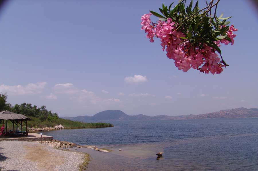An der südlichen Küste entlang des Sees führt die Izmir-Söke-Schnellstraße, die Städte wie Milas und Bodrum miteinander verbindet. Die nördliche Küste, deren Steilhänge mit wilden und halbdomestizierten Olivenbäumen bedeckt sind, ist bis heute so gut wie unberührt. Auf einen kurzen Stop hielten wir an einem Restaurant, dessen Terassen bis zum Seeufer reichten. Neugierig wurden wir von einer hier lebenden Van-Katze begrüßt.