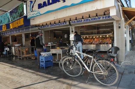 Wir waren schon einige Male in der Umgebung von Urla gewesen und hatten dabei auch die an der Küste entlang führende Straße Richtung Cesmealti genutzt, ohne dabei jedoch den Hinweis auf Klazomenai zu beachten. Jetzt fuhren wir bewusst die Küstenstraße, die von Güzelbahce kommend auf die Halbinsel führt, denn wir wollten die Anfahrt nach Klazomenai auch dazu nutzen, uns am Fischmarkt von Güzelbahce mit der Auswahl frischer Fische zu beschäftigen, die wir dann in einem der direkt am Fischmarkt befindlichem Fischrestaurants zubereiten lassen wollten. Ein Vorgang, der für Europäer ungewöhnlich erscheinen mag, hier aber, besonders an den Wochenenden, ein übliches Prozedere darstellt. Unsere Wahl traf auf den für die Region bekannten Cipura, einer Goldbrassenart, dazu einige Barbun, einer Rotbarbenart, die ebenfalls für die ägäische Küste bekannt ist und auf Deniz Börülcesi, einer Quellersorte, die gern als Salat zubereitet wird.