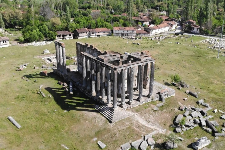 Der Siedlungsort Aizanoi mit seinen Spuren aus eisenzeitlicher, hellenistischer und früh-römischer Zeit wurde durch die Römer zur Stadt ausgebaut. Thermen, ein Theater, das Stadion, Brücken und Plätze sowie der bereits erwähnte Zeus Tempel wurden im Verlauf der Kaiserzeit errichtet.