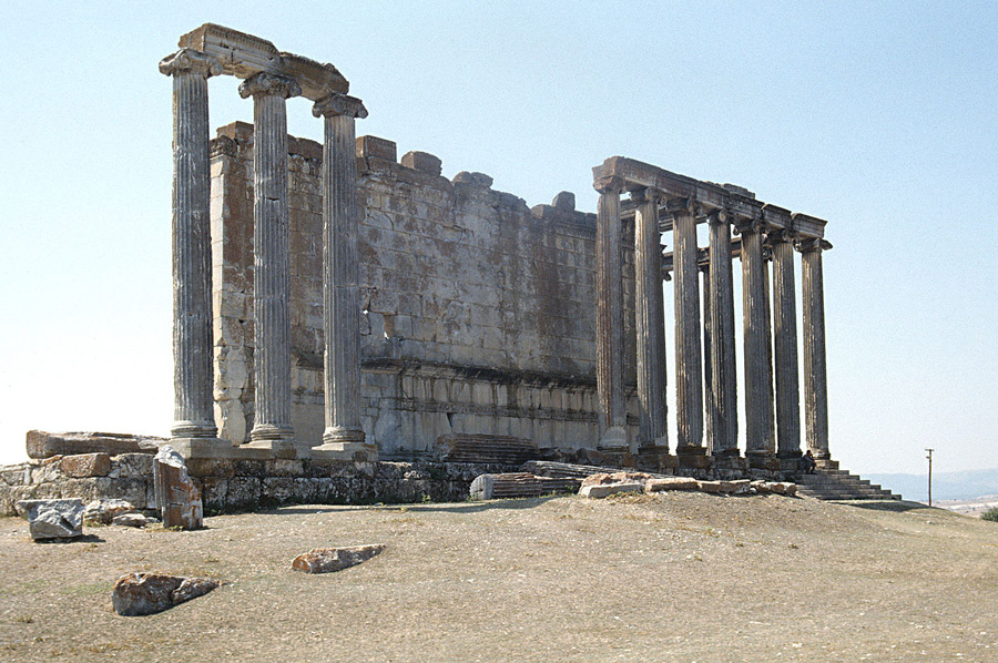 Seit dem späten 3. Jahrhundert vor Christus sind Kontakte Aizanois zur Metropole von Pergamon nachgewiesen. Durch den dann erfolgten schrittweisen Ausbau der Stadt an beiden Ufern des Pekalas und vor allem mit der Errichtung des ionischen Tempels zu Ehren des Kaisers Domitian und dem Zeus geweihten Tempel wurde Aizanoi selbst zur Metropole. Das Heiligtum des Zeus, des Hauptgottes der Stadt, wurde in Form eines Pseudodipteros erbaut. An den Wänden der Cella finden sich Reste umfangreicher Inschriften aus der Zeit Kaiser Hadrians, die sich auf den Landbesitz des Heiligtums beziehen. Bemerkenswert ist ein darunter liegendes Tonnengewölbe mit Lichtfenstern, das vermutlich als Kult Raum diente.