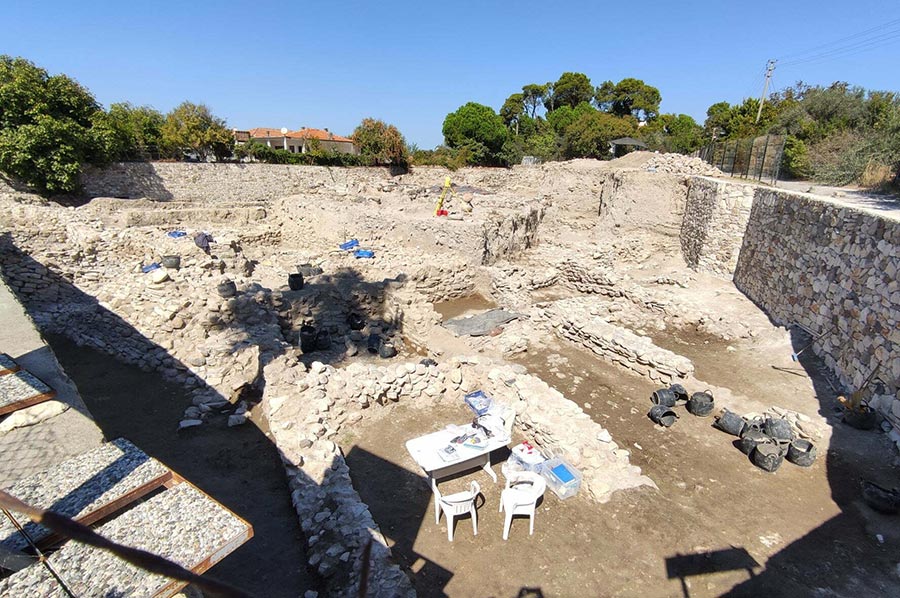 Die entdeckten Unterwasserfunde umfassen Gefäße und Urnen, von denen man denkt, dass sie über das Meer aus Häfen von Griechenland und Zypern, vielleicht sogar über das Schwarze Meer hier angekommen sind. Die archäologische Fundstätte war im Jahr 1950 von Ekrem Akurgal entdeckt worden und ihre Erforschung wurde ab 1979 von einem internationalen Team von Archäologen auf dem Land und unter Wasser weiter verfolgt. Viele der entdeckten Artefakte sind derzeit im Archäologischen Museum von Izmir Museum ausgestellt. Wie auch in Klazemonai hat sich die Küste im Laufe der Jahrhunderte stark gewandelt.
