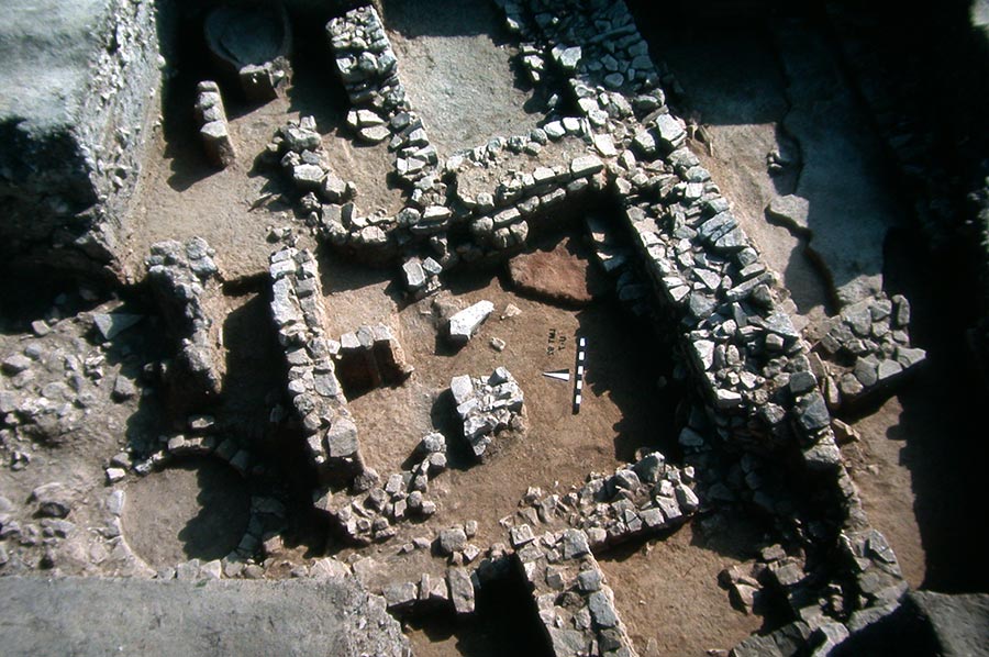 Untersuchungen des Bodens haben schließlich drei Kulturschichten zu Tage gefördert. Die unterste Schicht gehört zur Frühbronzezeit und stammt aus dem 3. Jahrtausend vor Christus. Drei Phasen dieser Schicht wurden bisher ergraben und die Anzahl der Phasen wird voraussichtlich noch weiter steigen. Die zweite kulturelle Schicht besteht aus fünf Phasen, die der mittleren Bronzezeit zugehören, und die aus der ersten Hälfte des 2. Jahrtausends v. Chr stammen.