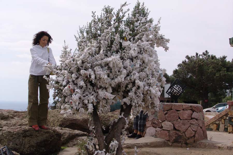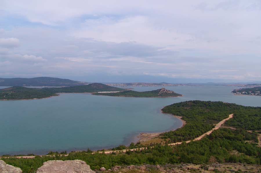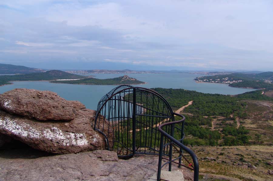 Hier oben auf dem Felsen, der über eine zwar kurvige, aber gute Strasse zu erreichen ist, hat man die beste Aussicht über die Bucht vonAyvalık mit den vielen kleinen Inseln. Entsprechend der örtlichen Mythologie soll sich in der Vergangenheit hier der Teufel eingefunden haben, um ein Tänzchen zu wagen. Dabei hinterließen seine "Füße" tiefe Eindrücke in den Felsen, halt die Fußspuren des Teufels.