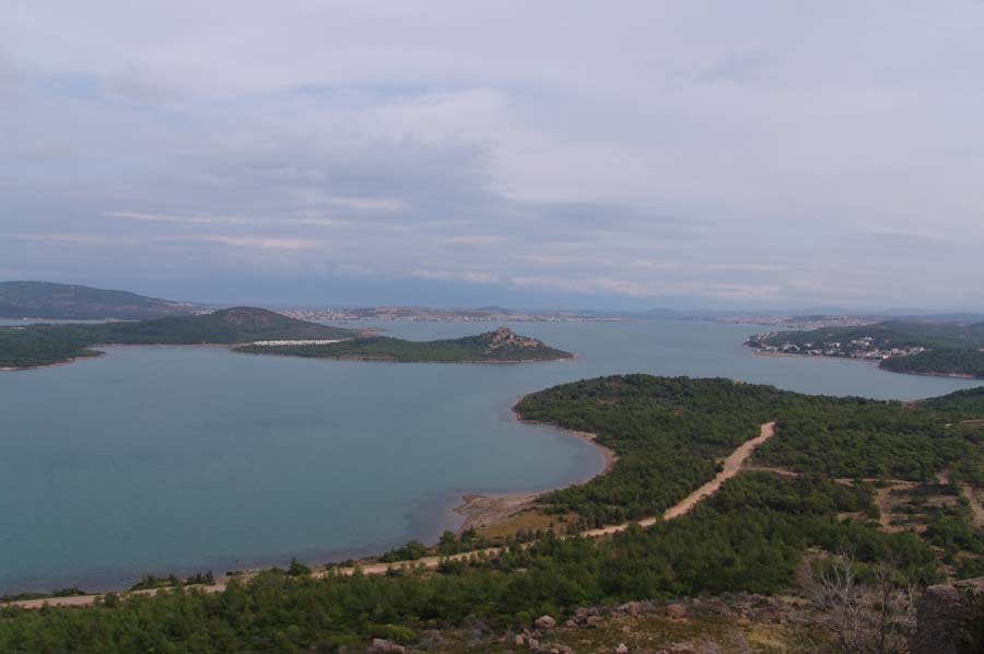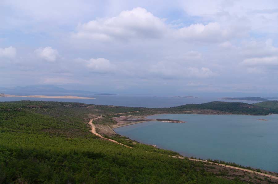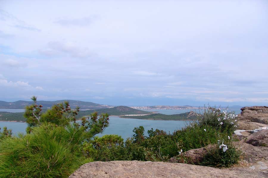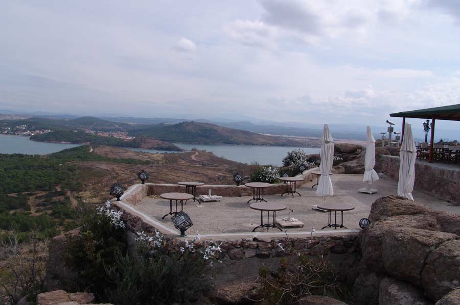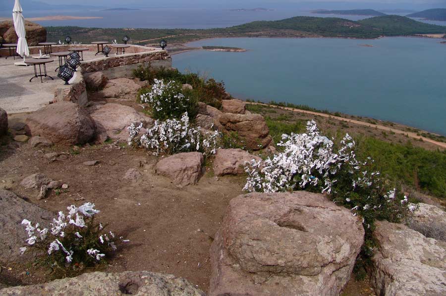 Ganz in der Ferne sieht man auch die Insel Lesbos. Wer sich die Zeit nimmt und am Abend zum Sonnenuntergang hierherkommt wird ein ganz unvergessliches Schauspiel erleben. Werfen Sie eine Münze in einen Spalt und der Teufel erfüllt ihnen einen Wunsch, zumindest können sie am späten Nachmittag erst einmal das Höllenfeuer in Form eines herrlichen Sonnenuntergangs sehen.