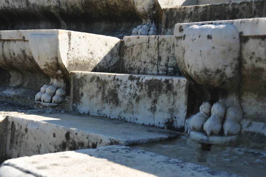 Leider gab es zum Ende des vergangenen 19. Jahrhunderts unter der Herrschaft der Osmanen die unter der Bevölkerung weit verbreitete Praxis der Kalkbrennerei, wozu riesige Mengen Marmor benötigt werden, die man natürlich am einfachsten aus den Ruinen zerfallener Städte bekommen konnte. Wenn man heute die Überreste der Ruinen von Magnesia mit den Bildern vergleicht, wie es der Archäologe Humann noch um 1893 vorgefunden hatte, weiß man um die Mengen an Material, die seiner Zeit abtransportiert und zerstört wurden.
