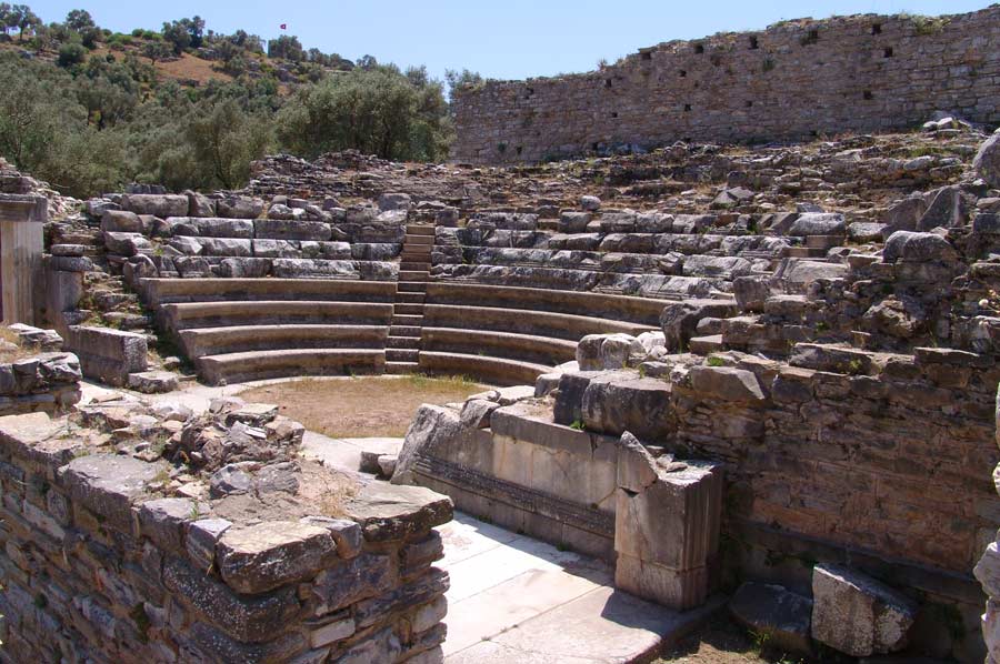 Das Bouleuterion, ein Versammlungsgebäude für den Stadtrat, ist eines der am besten erhaltenen Bauwerke in Iasos. Es zeigt die politische Organisation der Stadt in der Antike.
