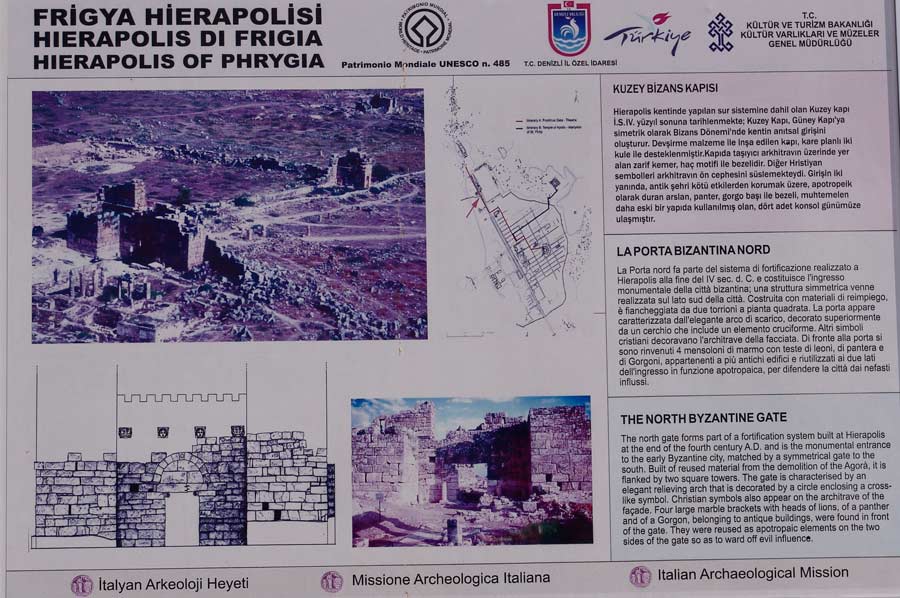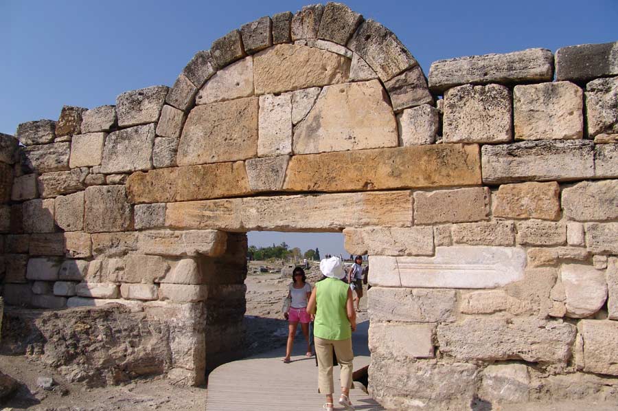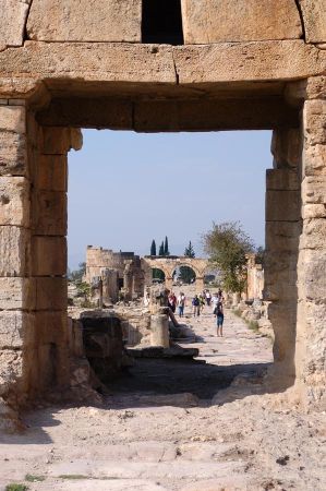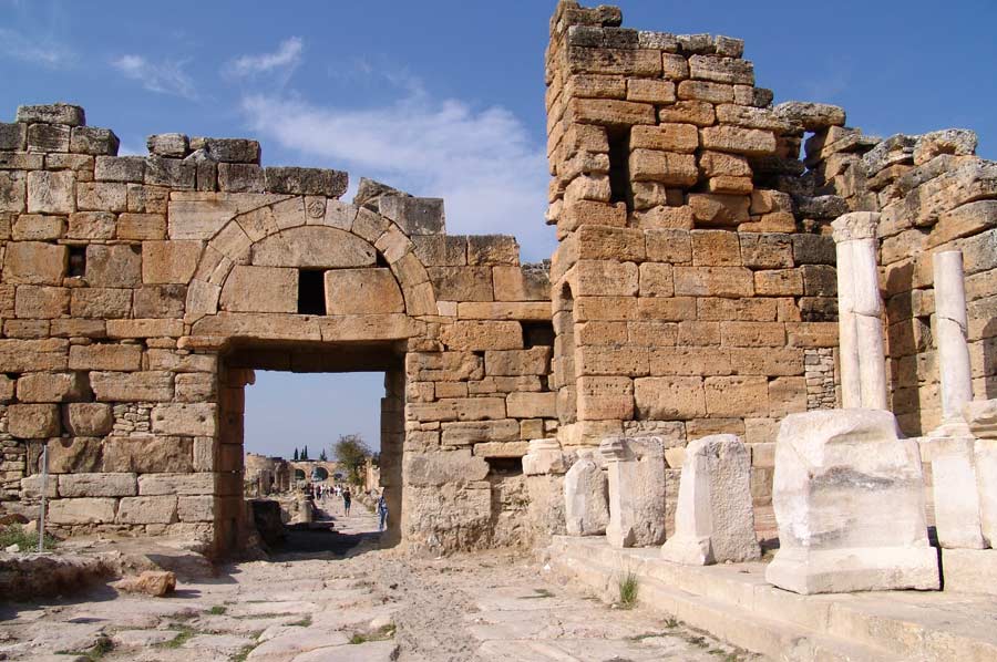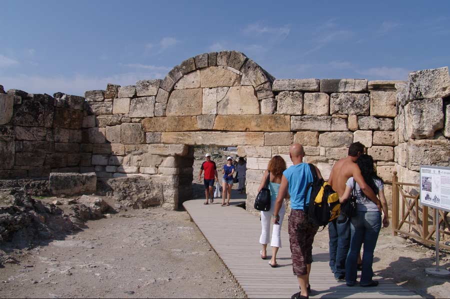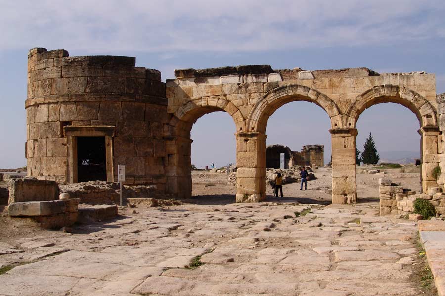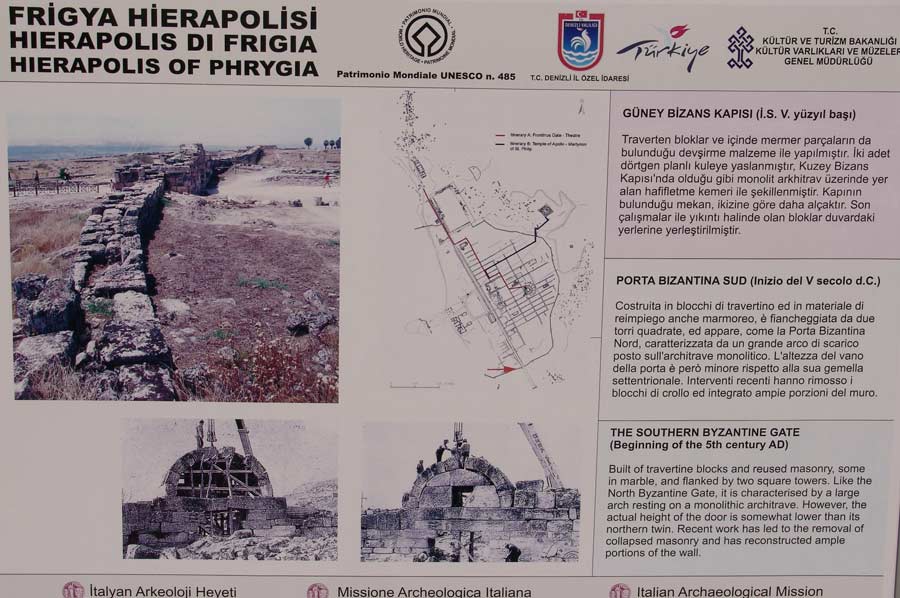 Südlich des Tores des Domitian, dort wo die Säulenstrasse mit der Stadtmauer von Hierapolis zusammenstößt liegt ein aus Abbruchsteinen gebautes byzantinisches Tor. Südlich dieses Tores befindet sich eine byzantinische Basilika und wiederum südlich davon das heute als Museum fungierende römische Bad mit seinen fünf Abteilungen. Antike Grabungsfunde aus der Umgebung sind im prähistorischen Museum in Beyce Sultan ausgestellt.