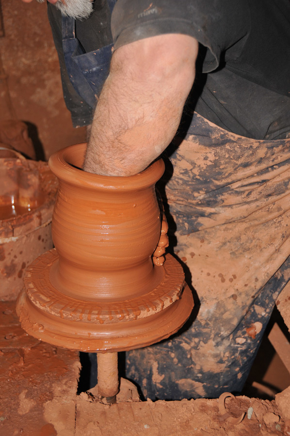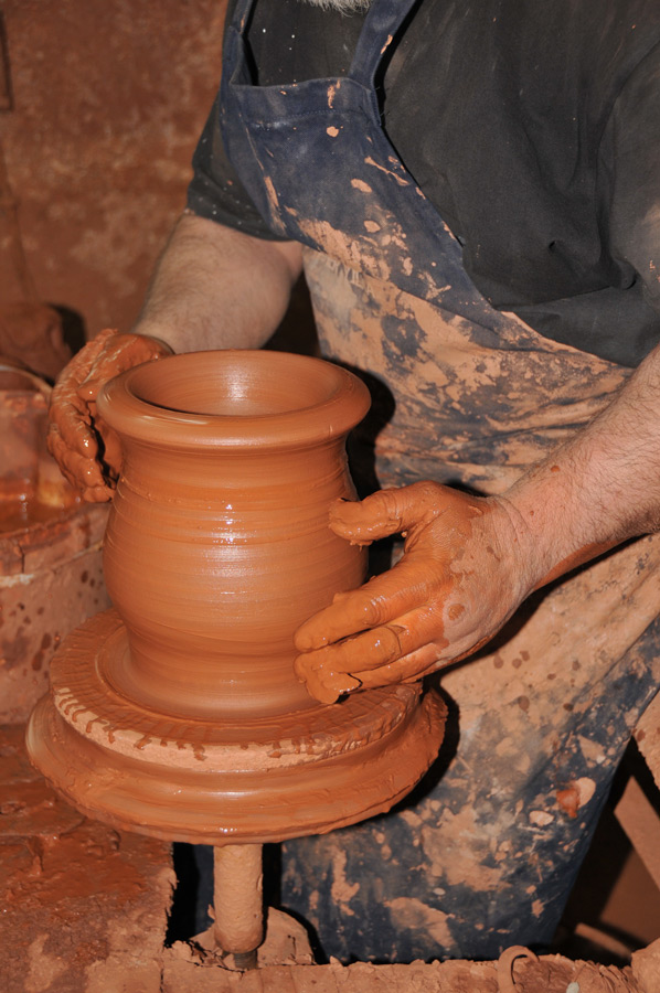 Unsere beiden Meister hatten uns mit den erstellten Töpfereiwaren auf der Drehscheibe ja schon überzeugt, als sie beim Formen auf der Töpferscheibe den in schnelle Drehung versetzten Tonklumpen mit den Händen oder mit Schablonen zu einem rotationssymmetrischen Gefäß auszogen.