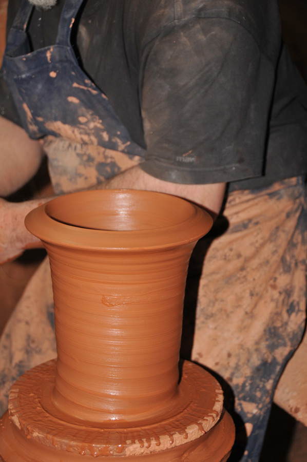 Zunächst einmal bewunderten wir die handwerkliche Geschicklichkeit der beiden Meister, die schnell und gekonnt aus dem natürlichem Erdmaterial Ton und Lehm zunächst ein Blumentopf, dann eine antik aussehende Amphora sowie eine langhalsige Blumenvase zauberten.