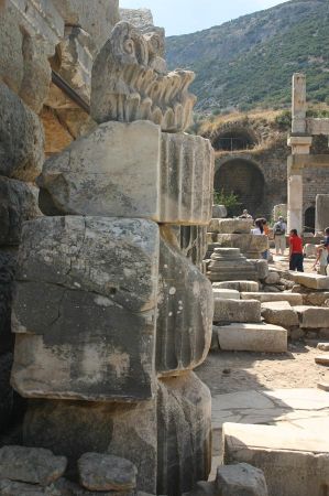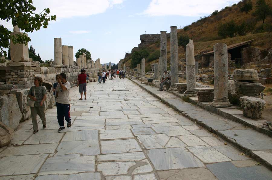 Die einstige Metropole Ephesus liegt in einer Talsenke zwischen zwei Bergrücken, deren Hänge noch heute, ohne festigende Bewaldung, aufgrund der einst dichten Bebauung durch die Stadtgebäude in Bewegung sind.