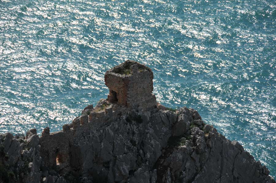 An der Spitze des Berges angekommen, hatten wir einen fantastischen Ausblick. Die Anstrengung hatte sich also gelohnt. Die Burgruine selber besichtigten wir nicht, da zum einen eine Schar von Touristen auftauchte und zum anderen der Preis von 10 TL uns etwas zu hoch erschien. Dafür entdeckten wir rechts von der Burg einen kleinen Pfad der zur Rückseite der Burg führte und einen ruhigen Platz für eine ausgiebige Pause bot.
