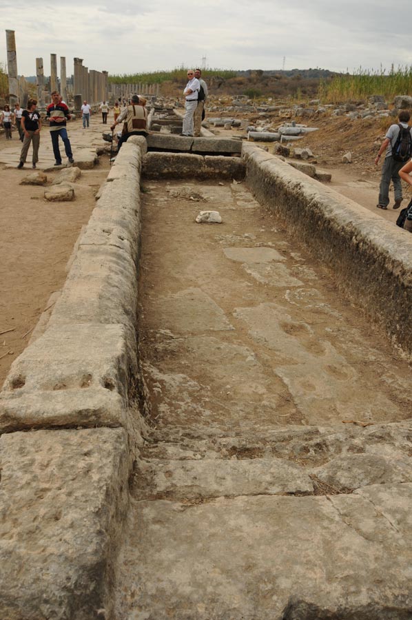 Diese prächtige Straße führt direkt durch die Stadt, flankiert von ionischen und korinthischen Säulen. Eine Wasserrinne in der Mitte sorgte nicht nur für Versorgung, sondern auch für das typische Rauschen des Wassers – ein antikes Sounddesign.