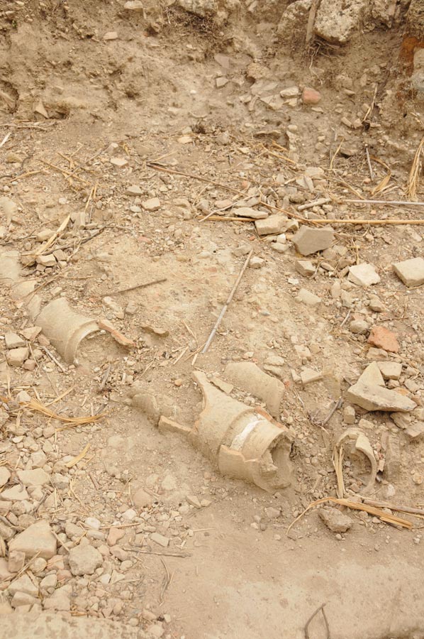 Etwas weiter die Straße hinauf, an der Stadtmauer und dem West-Tor liegt noch eine Badeanlage. Folgt man der Straße zum Ost-Tor, ist die Terrasse eines Tempels nördlich der Straße zu sehen.