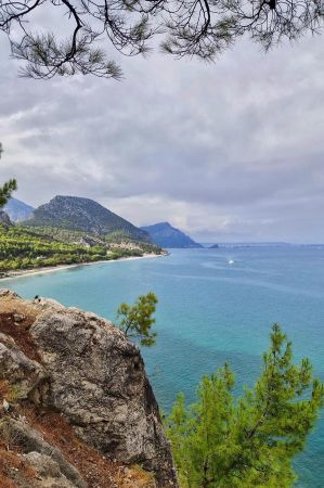 Danach führt ein kurzer Aufstieg zu einem atemberaubenden Aussichtspunkt auf die Beydaglari, mit Blick auf das Ziel unserer Wanderung, der herrlichen Bucht von Olympos. Diese antike Stätte liegt in einer herrlichen Naturlandschaft mit einem der schönsten Strande der Lykischen Halbinsel. Bademöglichkeit. Aufstieg: ca. 350 Höhenmeter. Abstieg: a. 350 Höhenmeter. Weglänge: ca. 12 km. Reine ( Gehzeit: ca. 3-4 Stunden).