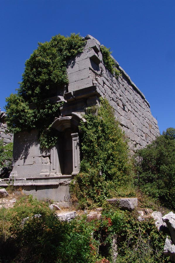 Route: Die ganze Strecke ist ein deutlich erkennbarer Wanderpfad. Der Einstieg zu dieser Wanderung befindet sich in Olympos am westlichen Ende der Nekropole, beim großen Grabbau.