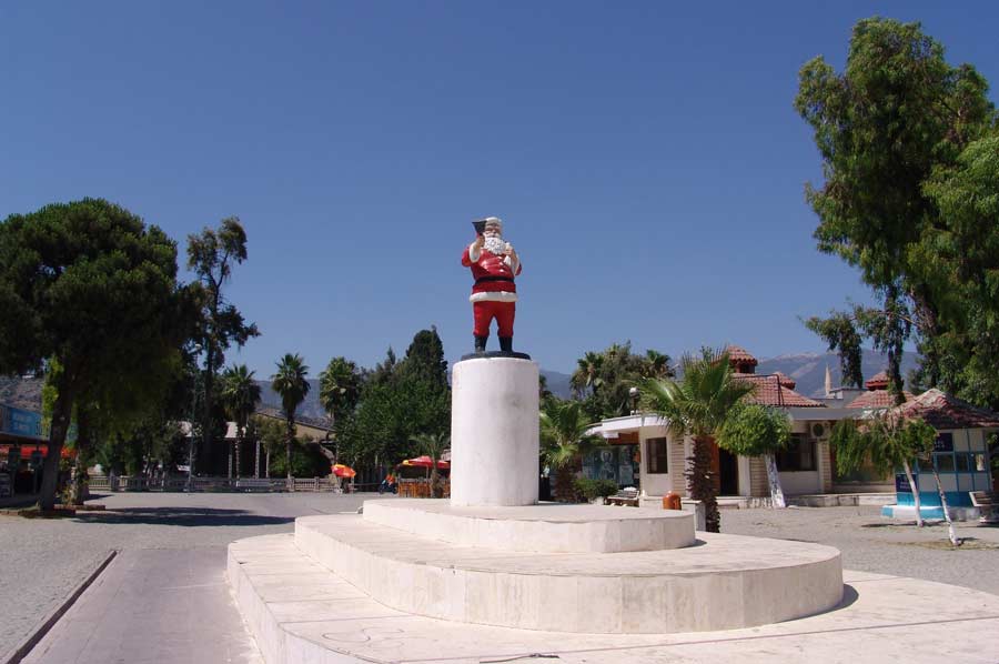 In der nahegelegenen Stadt Patara um 300 geboren, kam der heilige Nikolaus als junger Mann nach Myra und wurde schon bald zum Bischof gewählt. Da Myra einen Hafen hatte, wurde der heilige Nikolaus erster Schutzpatron der Seefahrer. Die verlassene Nikolauskirche, in der er vermutlich predigte, liegt in einer der zwei Hauptstraßen von Demre. Sie ist sowohl christliches als auch moslemisches Heiligtum - die Türken nennen ihn Noel Baba, Vater Weihnacht.