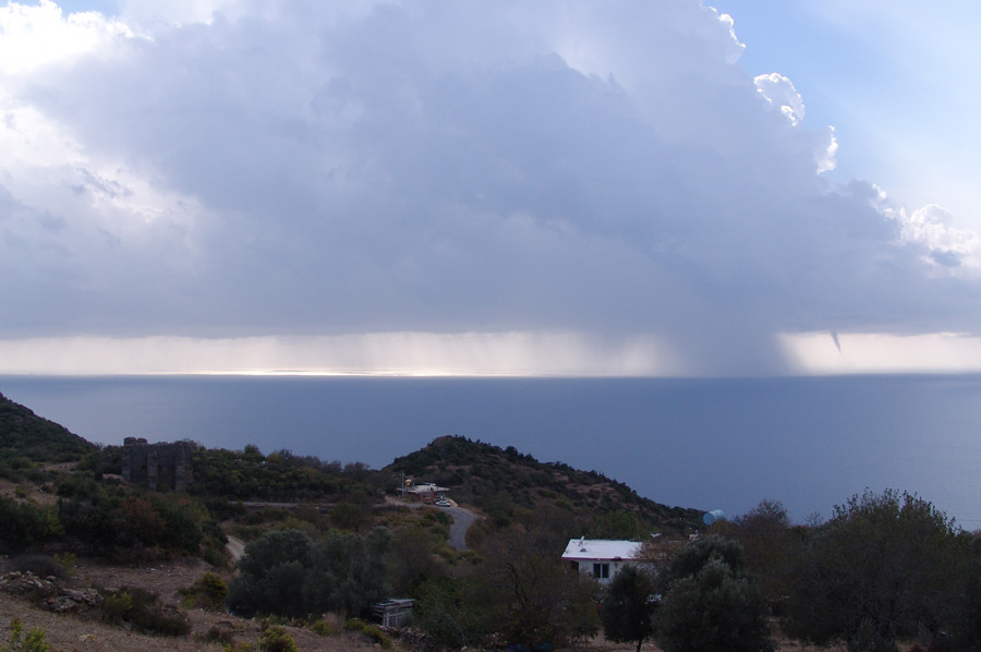 Ad Cragum heißt in der Übersetzung „auf dem Berge / Felsen“, kein Wunder, denn die Stadt liegt etwa 300 Meter über dem Meeresspiegel. Auch vor der Stadtgründung muss es hier bereits eine kleinere Siedlung oder gar eine Burg gegeben haben, denn man fand auch griechische Spuren. Auch die Seeräuber der vorchristlichen Zeit nutzten die Felsenburg bereits 67 vor Christus für ihre Zwecke. Ein natürlicher Hafen, der durch eine Höhle in den Felsen zu erreichen war, bot optimale Fluchtwege und Schutz vor den Verfolgern. Auf diese Art und Weise konnten sich auch die Seeräuber in der Region lange halten. Wir hatten leider etwas Pech mit dem Wetter, denn dunkle Wolken zogen vom Meer her an Land, sogar ein Wirbelsturm hatte sich entwickelt.