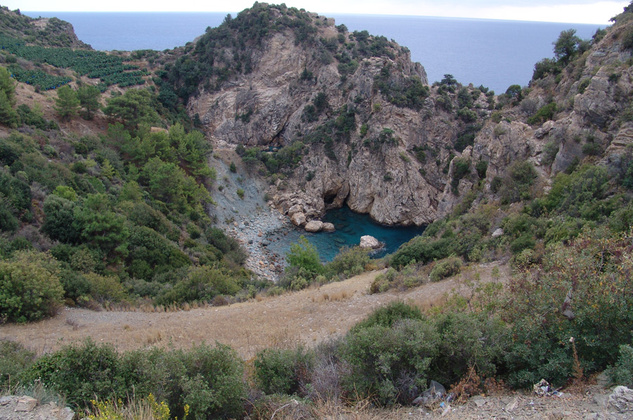 Genau südlich der Ruinen, zwischen dem Festland und einer kleinen Insel, hat sich Jahrhunderte lang ein Ankerplatz befunden, darauf deuten Funde von Ankern und Amphoren hin, die bis in das 5. Jahrhundert vor Christus zurück verfolgt werden können.
