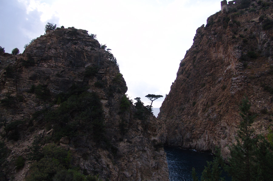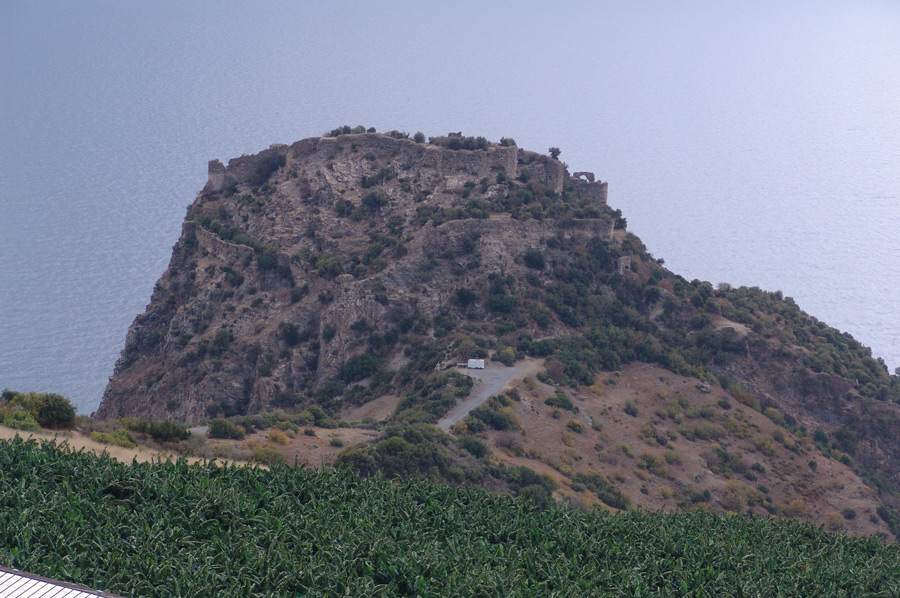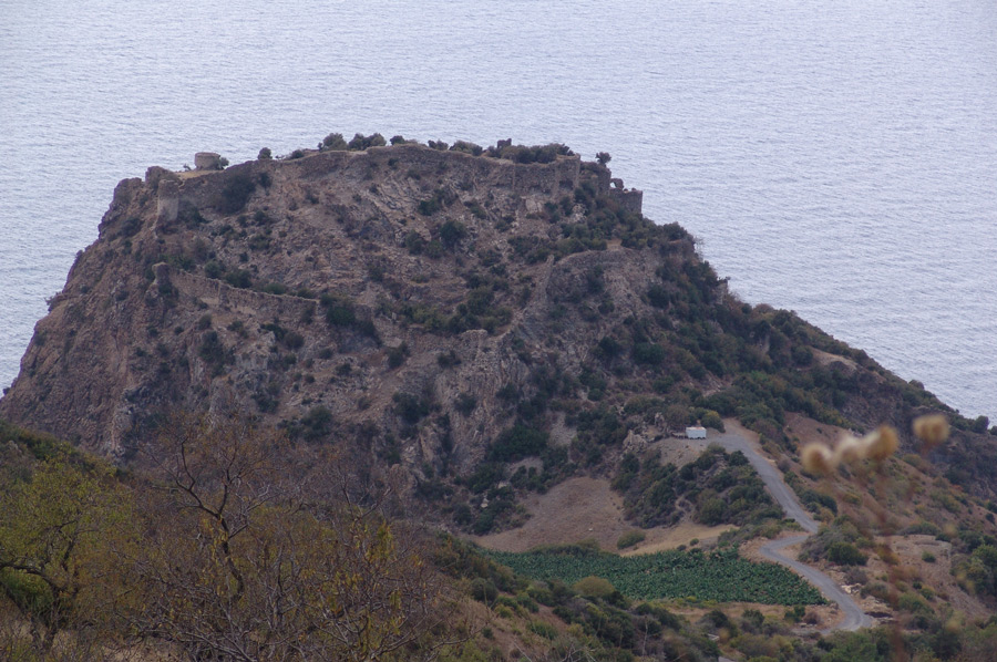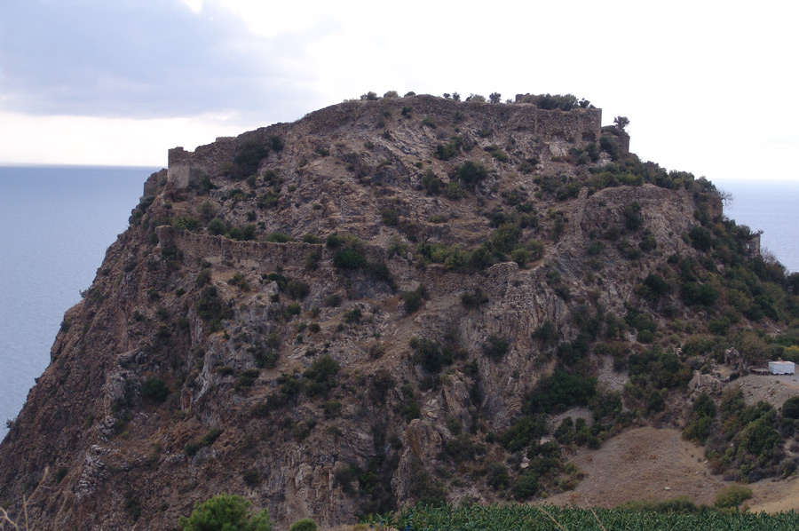 Der Zugang zur mittelalterlichen Festung im Westen erfordert bergsteigerisches Können und viel Zeit, dafür ist es eine spannende Tour mit fantastischen Ausblicken. Nordöstlich der Burg ist ein Hafen gewesen, das beweisen die hier gefundenen 53 Anker aus Stein, Eisen und Blei, die auf dem Meeresboden gefunden wurden. Viele der Anker entstammen der byzantinischen Epoche und aus dem 7. – 10. Jahrhundert.