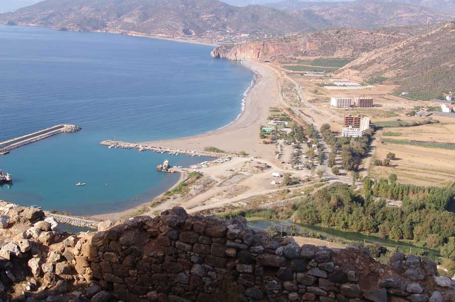 Auf dem westlichen, mittleren Hügel, der städtischen Akropolis, hat eine Burg gelegen, und hier sieht man auf der östlichen Seite die Reste von zwei Nord-Süd ausgerichteten Ringmauern. Die äußere Mauer hat eine Höhe von bis zu 10-20 Metern und zwei quadratische Türme im südlichen Ende, wo die Mauer nach Westen dreht. Laut der griechischen Inschrift über dem Tor in der äußeren Mauer, ist diese im 3. Jh. n. Chr. errichtet worden. Beachten Sie bitte den Adler mit der Schlange im Schnabel. Im Norden, Süden und Westen sind die Abhänge steiler; die Mauern waren hier niedriger und sind daher nicht mehr so gut erhalten. An die äußere Mauer angrenzend eine Badeanlage mit zwei gewölbten Räumen. Innerhalb der Mauern befinden sich Reste von Türmen und anderen Gebäuden, von denen einige womöglich älter sind als die Festung und Tempelreste sein können. Auf der westlichen Seite des östlichen Hügels, der Akropolis genau gegenüber, ist eine Stützmauer von bis zu 4,5 Metern Höhe. Südöstlich der Stützmauer liegen ein paar Gräber und zwei Gebäude, die wahrscheinlich Bäder gewesen sind. Auf dem östlichen Abhang liegt die Agora, aber hier gibt es nicht viel zu sehen. Oben auf dem Hügel sind die Reste eines Weges gefunden worden, der die Agora mit der Nekropole verbunden hat.