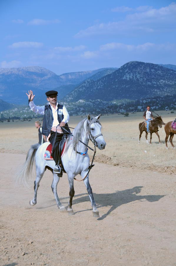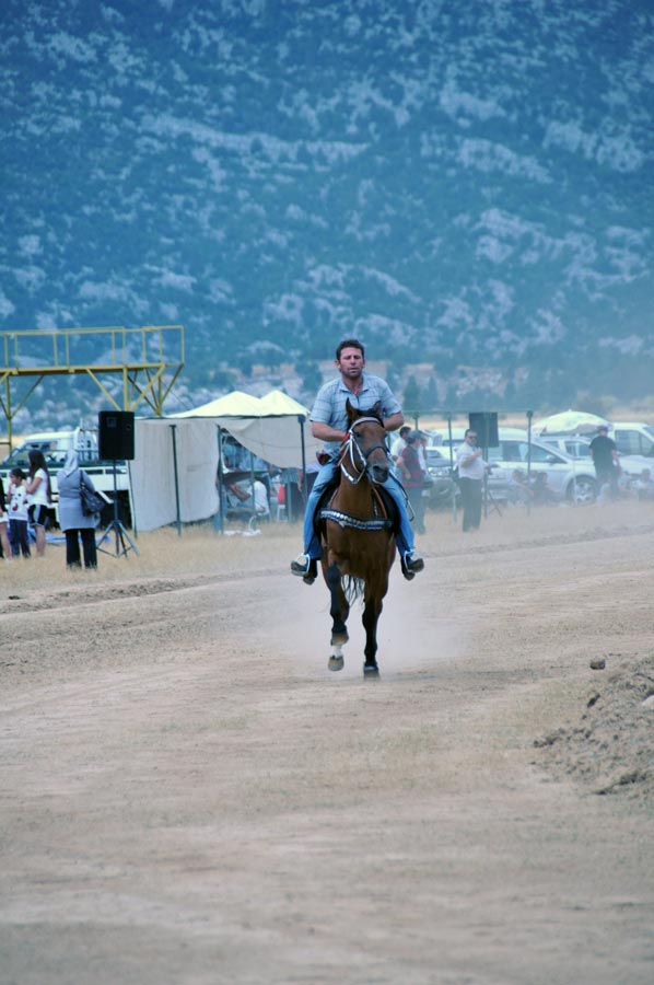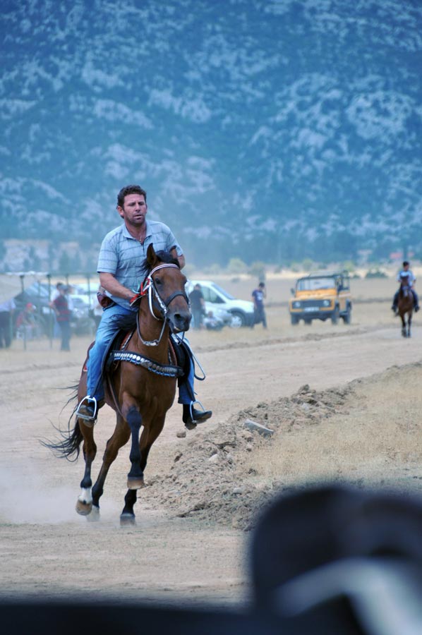 Hier oben auf dem Hochplateau von Ormanli ist eine ovale Rennstrecke von ca. 1.200 Metern Länge angelegt worden, die nur von grobem Geröll frei geschoben worden ist. Pferd und Reiter starten in verschiedenen Kategorien, jeweils in Gruppen von bis zu 6 Pferden. Sofort nach dem Start gegen die Pferde in den Passgang über, wobei ein fast schwebender Zustand erreicht wird, denn in einem kurzen Moment sind alle 4 Hufe gleichzeitig in der Luft. Diese Schwebephase macht das Reiten so angenehm, denn es ist ein sehr schnelles, dabei sehr bequemes Vorankommen möglich.