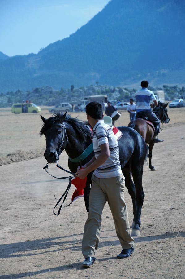 Etwa eine Stunde später erfolgen dann die obligatorischen Einführungsreden der örtlichen Politiker, der religiöse Segen wird mit abschließendem gemeinsamen Gebet erteilt und schon sind die ersten Rennpferde am Startpunkt in Ormana. Jeweils zu zweit und dritt wird ein Rennen nach Pferdeklassen unterschieden geteilt durchgeführt. Der jeweilige Sieger gelangt dann in die nächste Runde. Wichtig dabei ist die strikte Einhaltung der Gangart Rahvan, maximal dreimal darf das Pferd aus dem Rhythmus gelangen, dann erfolgt die Disqualifikation. Der jeweilige Sieger empfängt am Zieldurchlauf eine rote Flagge, die dann voller Stolz noch in beiden Händen über Kopf auf der schnellen Ehrenrunde gezeigt wird.