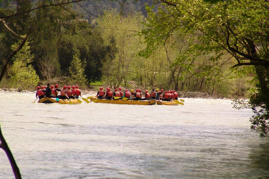 Mit etwas Glück stößt man während der Tour auf eine der für den Köprülü Fluss typischen Rafting Touren, die auf Touren unterschiedlicher Schwierigkeitsgrade den Fluss für die Rafting Abenteuer nutzen. Besonders um die Amateure etwas mehr mit der Rudertechnik vertraut zu machen, startet man die Touren etwa 100 Meter vor der Oluk Brücke, wo das Wasser relativ ruhig ist und der Fluss ein Becken bildet, um dann die Brücke flussaufwärts gegen den Strom rudernd zu erreichen. Hier beginnt normalerweise die Tour für die Amateure, während die etwas professionelleren Sportler meist noch etwas oberhalb der Oluk Brücke ihre Abenteuerreise beginnen. Nach der Passage des Wasserfalls rechts neben dem Startpunkt beginnt die eigentliche Tour des Schwierigkeitsgrades 2 – 3 den Fluss hinunter. Weitere unzählige Wasserfälle die man während der Tour entdeckt, tragen neben der wunderschönen Landschaft zur Freude an der Rafting Tour bei.