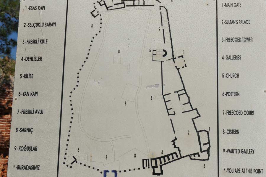 Die Wandfresken, die in einem der Ecktürme dieses Burgteils gefunden wurden, scheinen diese Theorie zu bestätigen. Die Fresken sind gleichzeitig Beweis seldschukischer Vorherrschaft. Der Reichtum an seldschukischen Keramiken und Kacheln aus dem 13. Jahrhundert zeigen, dass dies der Standort des Sultanspalastes war.